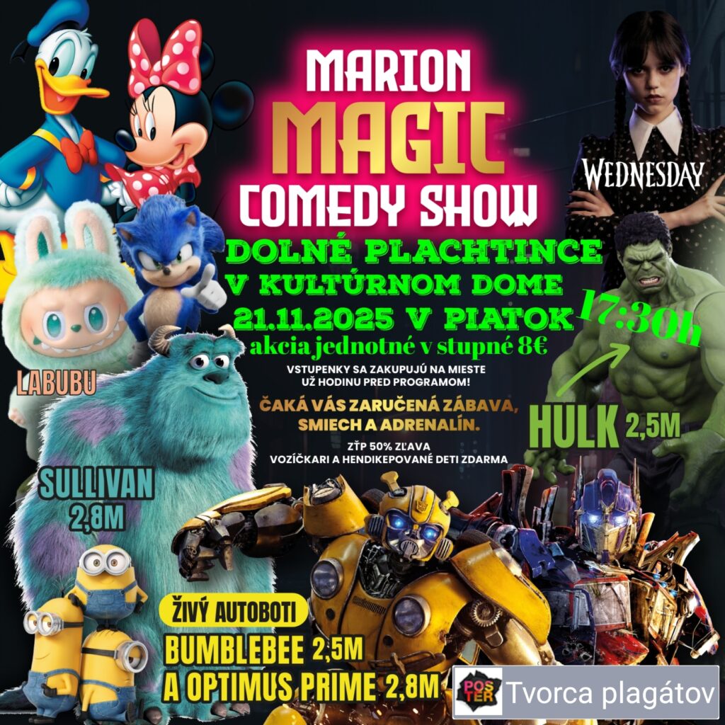 Zavítajú k nám najznámejšie rozprávkové postavičky Mimoň, Tigrík, Lolka, Fredy, Šmolko, Mickey a predstavia sa najväčší živý maskoti na Slovensku. Obrovskí Saliven a Hulk v životnej veľkosti. Príďte sapozrieť na autobota Transformers bumbleebe a tešiť sa môžete aj Wednesday. Čaká Vás zaručená zábava a smiech.